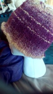 Both sets loom knitted. I think this was a Loom a Hat pattern. It was so easy and I loved these slippers so much I almost kept them. They were SO soft. I think someone will love them as much as I did.