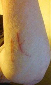 I didn’t even know she drew blood until after I sat down. I was FaceTiming with friends and I showed them. They had me leave the conversation to clean it and treat it so it wouldn’t get infected.