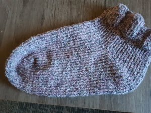 And adult sock bootie! And then I needed to get bootie two up and running so that I wouldn’t lose the stitch markers. So the toe on number two is done. I like the part where you get to the place you can start pulling the toe closed. I’ll probably get to that part tomorrow. Anyway, my hands are hurting and it was hard to stop knitting so I could get to my writing.