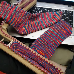 I’m still teaching myself to circular needle knit a pair of toe-up magic circle socks. I’m giving up on the provisional cast-on. I think it isn’t the actual cast-on that bothers me; you aren’t starting at the tip of the toe but farther in. So my blog-friend at Missy’s Crafty Mess shared her favorite cast-on. It does seem a lot more logical, so I’m frogging those again and trying this instead. Maybe I should call it Frogging Friday at this point?