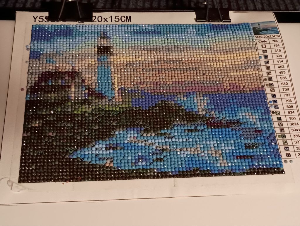 I’ll be sealing the Dock and the Lighthouse tomorrow and setting up new Diamond Paintings. It’s too hot for anything else.