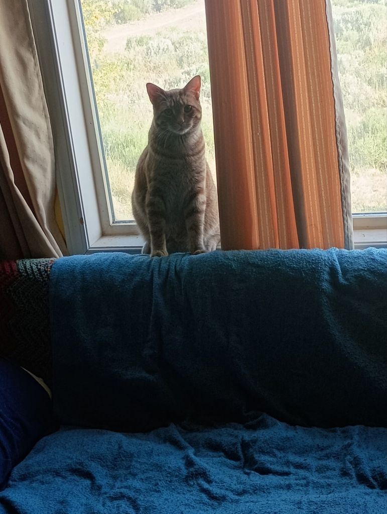 This reminds me of our Sammie. Or is it the other way around? That scrappy feral kitten is looking more and more like Garfield. I’m constantly telling the other guy to show down on the treats. He’ll do it for affection.