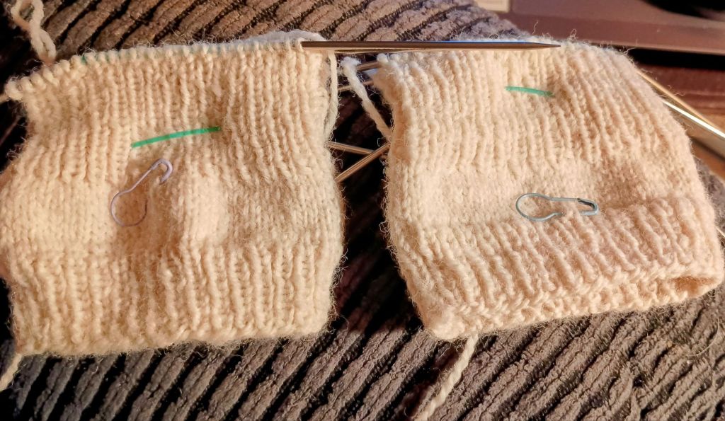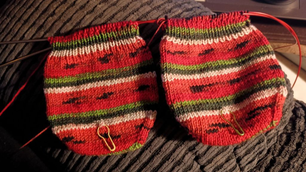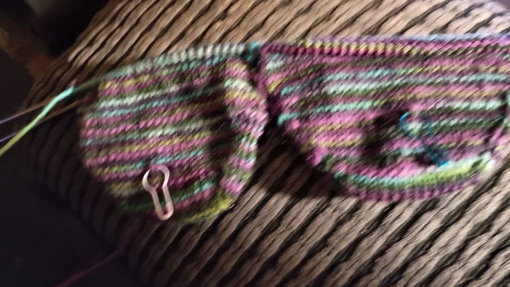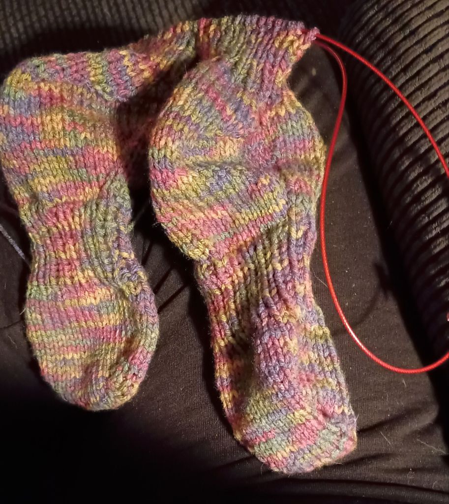 The only knitting making progress are my experimental slipper socks.