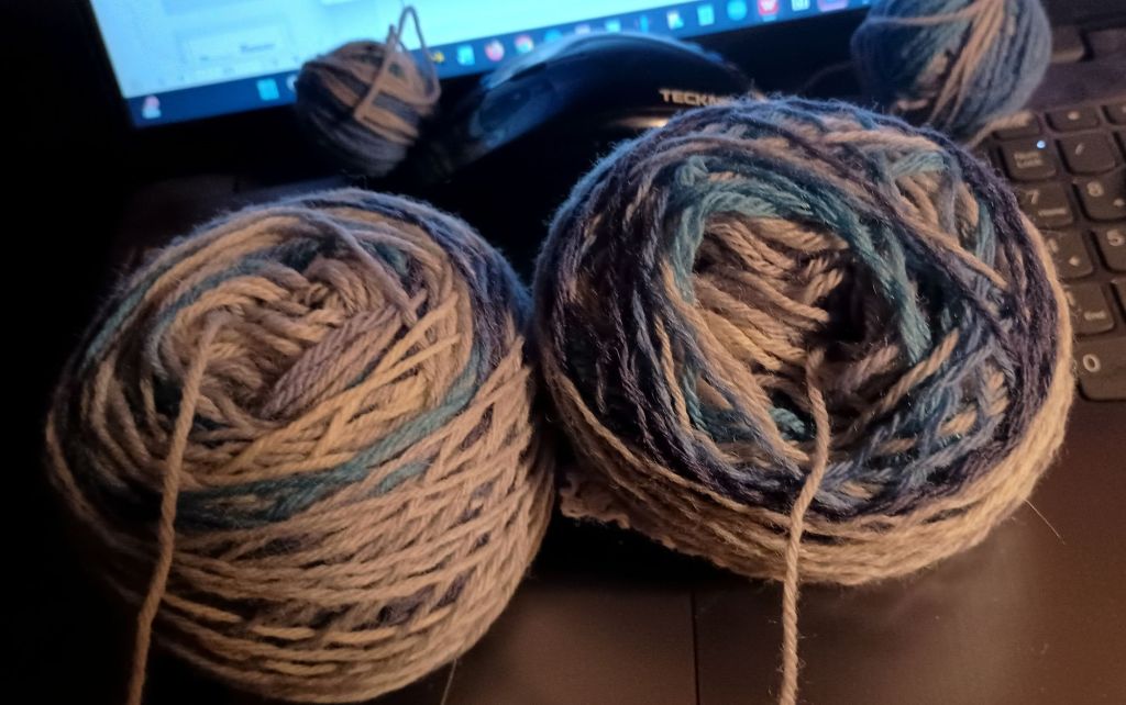 This is what took all my time. Milo (the dog, not the cats!😉) made yarn vomit clouds with one skein. I had caked it but after knitting a few inches on my toe-up, two-at-a-time, Fleegle Heel socks for my daughter, and finding they weren’t matching up at all, I frogged the pair, recaked both skeins. Then recaked again one of the cakes (turning it inside out. And hopefully matching up the skeins.