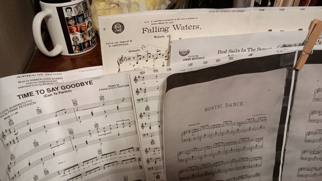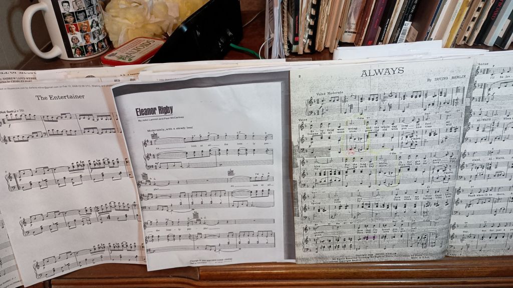 Sondheim is rolling around in his grave as I work on this and quite a few other of his songs. (That intro kills my eyes and hands!) By the way, I finally got brave enough to get back into Phantom songs. That has inspired much longer playing sessions. I started out last October 1, 2024 doing minutes or just an easy tune. This week I managed two sessions of over an hour each. And I was excited by how much fun I had!