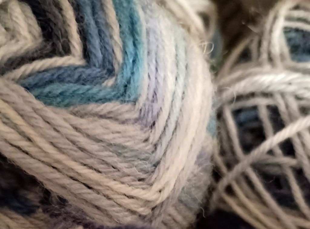 Upper left purple striped socks. Just the toes. Straight down are the watermelon socks. Well into the arch ribbing. Middle row, top, lavender/pink socks, also to arch ribbing. Can barely see the white yoga socks in the middle but one sock is nearing the heel cast-off. I hate working a sock at a time. One sock syndrome is real. The bottom is new yarn from my son. I couldn’t wait to see what happens with this blue and white yarn. Upper right is the lonely yarn from my daughter. I will receive the new needles for this pair on Monday. They will be so cool!