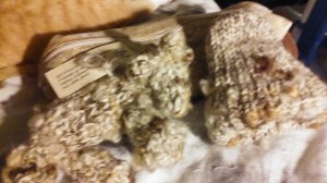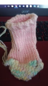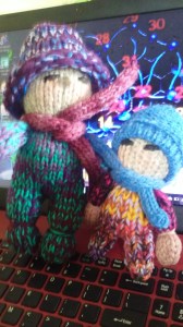 These little guys are fun to make. Thanks to LoomaHat.com for teaching us how to make them. The big one I made on the KK 24 peg. The little one I did on my Martha Stewart 24 peg loom which is much smaller. It’s fun to see how different they turn out. I usually use up my scrap yarn on these.