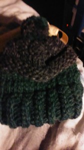 Hey, everyone! Here is my very first needle knitted hat! I started with a provisional cast on and then alternated inches of purls with inches of knits and even cast off first with the circular needles, then finally on four Double Point Needles. Please allow me a moment of awesome pride. Okay. I’m over it.