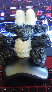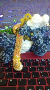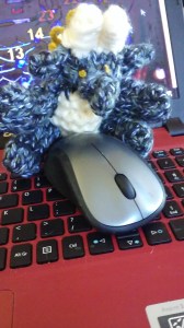 This is many shots of the same dragon and his little hat for a baby sibling. He likes the mouse. He thinks he is supposed to ride on it. He’s just a baby dragon and doesn’t know better. By the way, the lion and the dragon are Scarlett Royal patterns, too. I love her minis best and the sheriff here in town as requested I make a lot of these as he loves handing them out to the homeless kids or kids at the clinic. Because they are tiny and are easy for the kids to hold and enjoy. If the sheriff wants minis I make minis, what can I say?