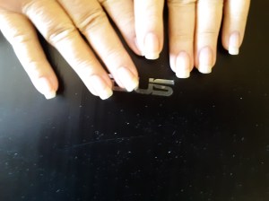 There are things you can do with nails that you can’t without. Like a good back-scratching. And they make my fat fingers look nicer. But regardless of the science that says nails stay cleaner when they are short, I tend to disagree. See how clean these sweeties are? When I have short nails, the free-edge gets blackish with dirty, greasy, grimey, crud. I use the brush and have to scrub harder. Without nails, there are things I can’t do with nails, like rub my face. It’ll be nice not to scratch my eyeballs! Though we are advised to keep them short during the pandemic, this is the stage I have to cut anyway–rebel much?–because they break down below the quick. That hurts! So bye, bye nails!