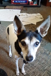 And now, for no particular reason, a picture of Kali. I think she wanted equal time with the cats starring on this one. Sorry that you had to see the (cleanish except for the cats’ scratchpad cardboard flakes) piddle pad and her ‘hide the biscuits’ (really dog treats not the other) towel. But hey, there’s Pictionary!