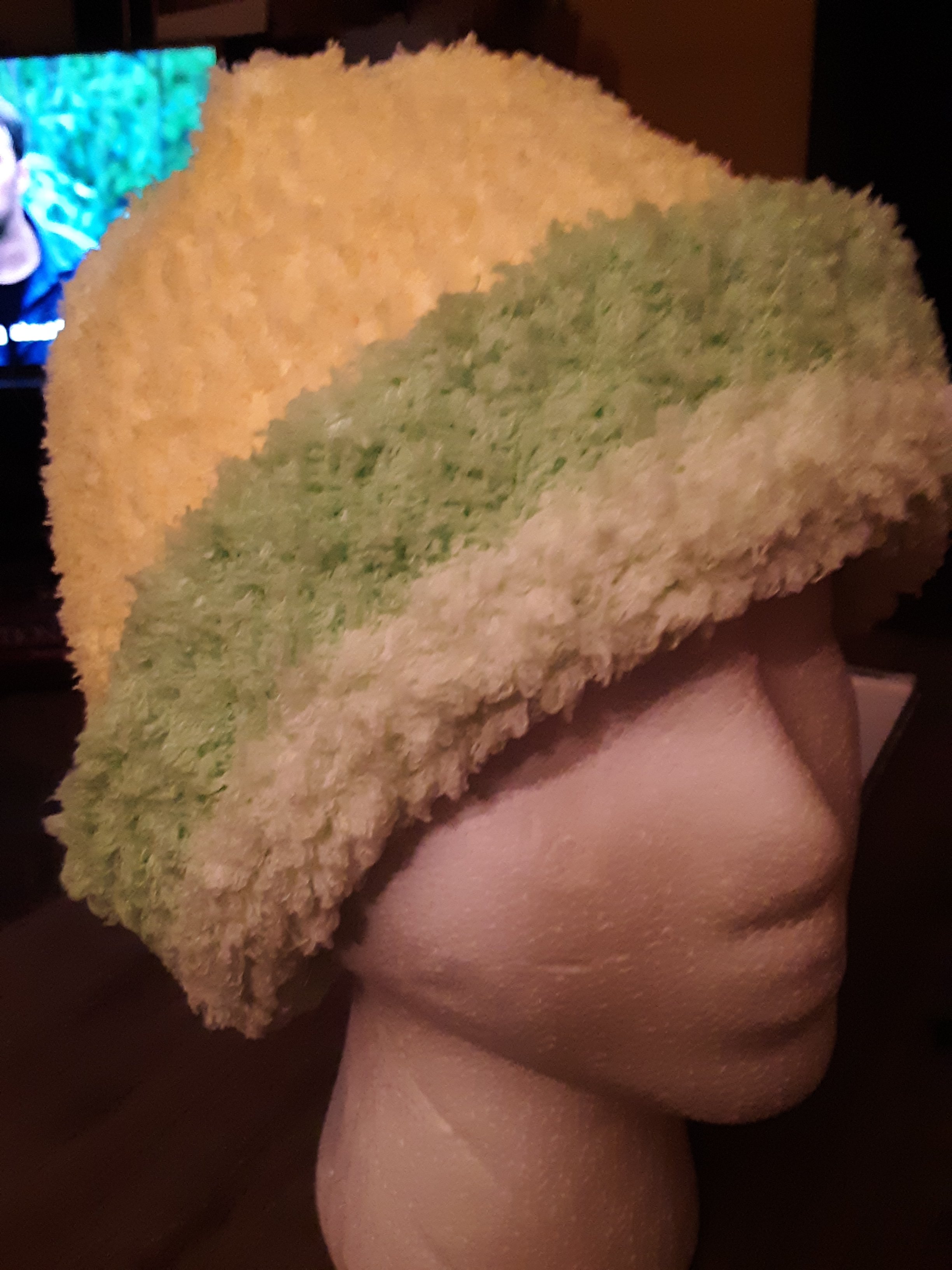 The last two hats were for smaller heads. So I decided to make one a little bigger. I just finished the ribbing and started on the basket weave part. It is easier on my hands than crocheting or knitting, so while I am feeling the arthritis, I’m being gentle on the fingers.