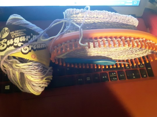 I finished these cotton slippers for my friend today. Now I have to wait until payday to send them. KB His and Hers looms, followed by the how-to YouTube.