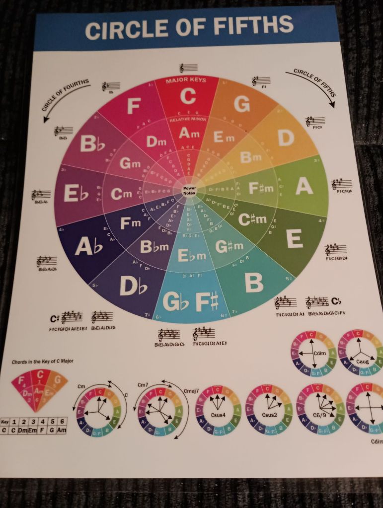This two sided poster helps with positioning and the second side helps with composition, harmony, and scales, etc. It’s been a long time since music theory classes