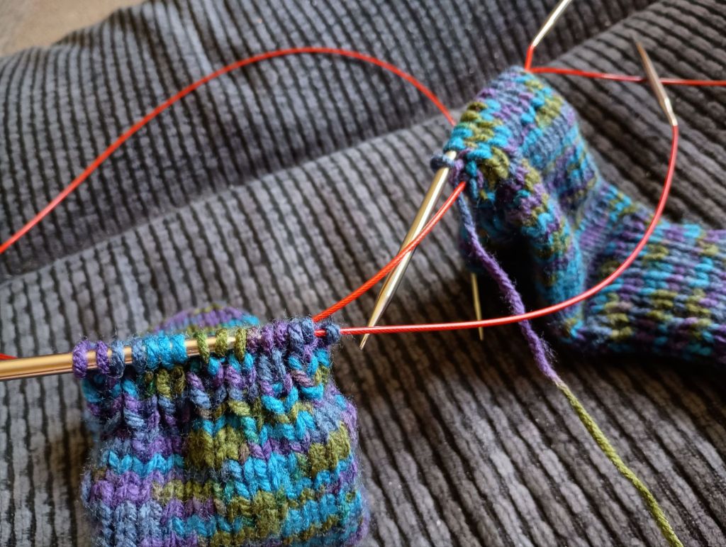 The increases for the heel are nearly finished. So I may be nearly finished with this pair.