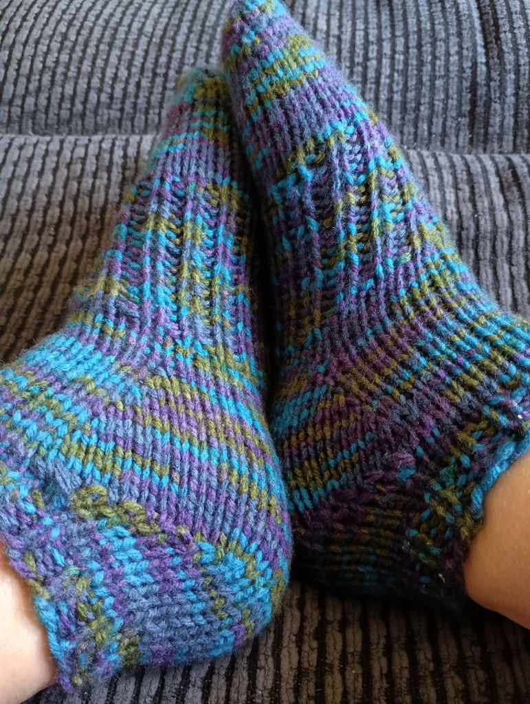I’ve only added a couple rows since I posted these. But only 2 inches until the heel. I’m planning to try the Fishlip heel. I bought the pattern. You can Google where to get it. I’ll include it when I find out it works for me.