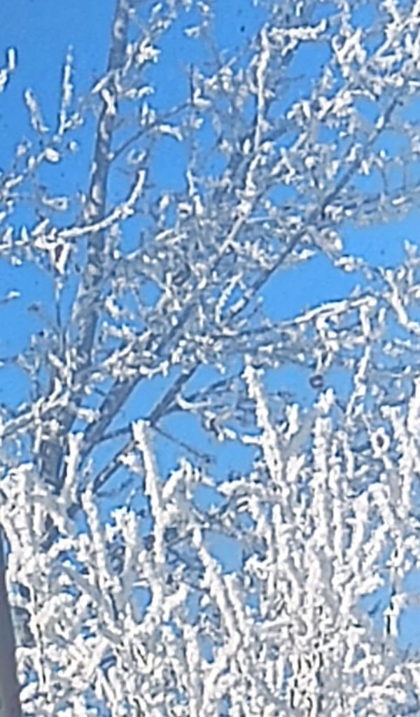 This shows the freezing fog of the past week is cleared. See that beautiful blue sky. It’s not gotten too much above 32 this week. Pretty. But the weather changing is still causing arthritic pains for we old folks.