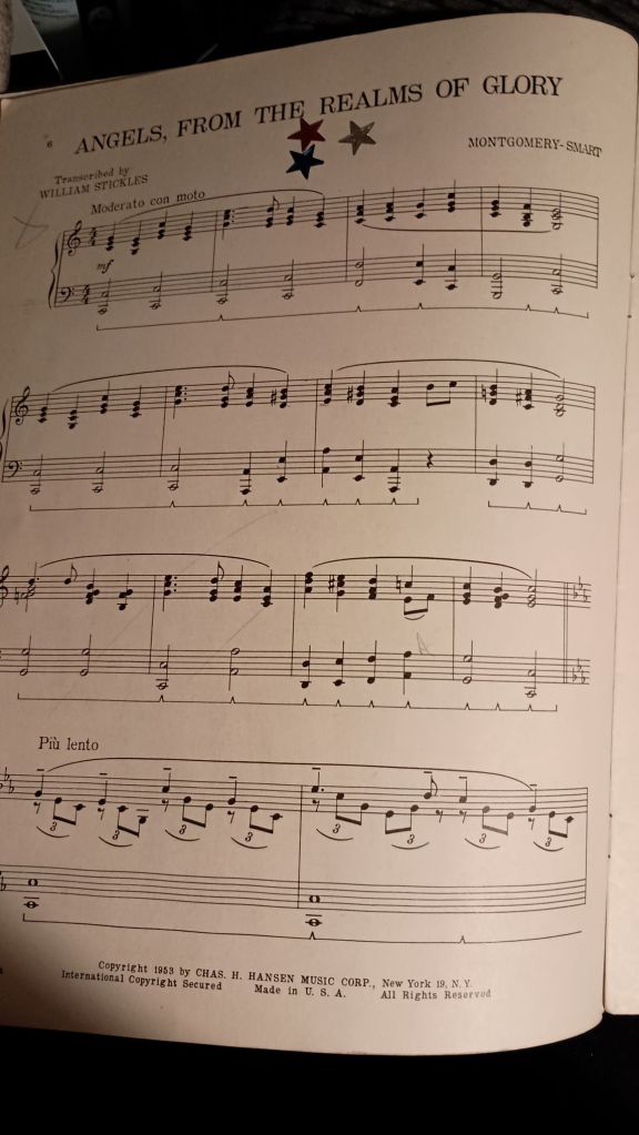 I found a 4 pager that is fun to pianoize. I know I could play it easily when I was a young teen. See the star stickers? Yeah, I thought I was too old for cutesy stickers. Yet, my prof in college often gave us adult students stickers or happy faces. Oh, the old, boring age of adolescents! I should probably do a vlog ‘concert’ to see if I’ve improved since my last ‘warts and all’ vlog