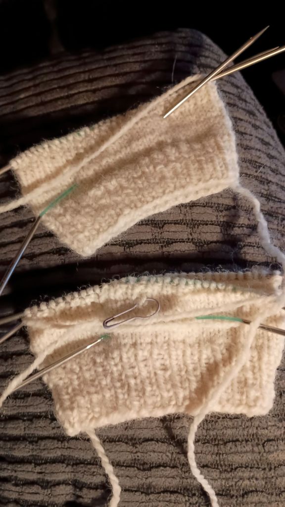 The yoga socks on the Hiya-Hiya Flyers are coming along. The more I work with these skinny, sharp needles, the more I like them. I just need my stronger glasses to ensure nice stitches.