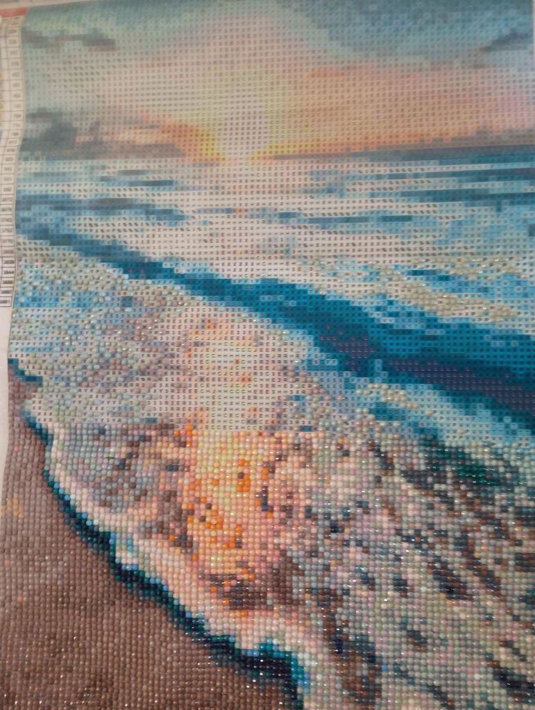Working the bottom fourth of my new Sea Turtle Diamond Painting. I’m listening to “Learn Faster, Perform Better” by Molly Gebrian during the painting. It’s very interesting.