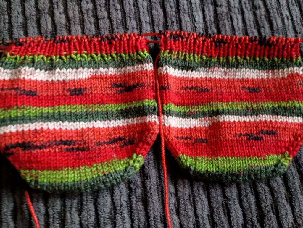 So the watermelon socks are coming along. I debated whether to add the arch-hug as I call that ribbing but I really like how it’s working out. This pair should be way farther along but I had to tink out about 2 inches. And though I now knit Continental, ribbing is still slower. The finer yarn and needles are hard for my hands. I knit these in shorts spurts.